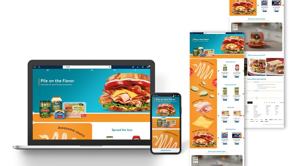 Led design direction for a custom digital storefront for Kraft on Walmart.com centered around a simple, relatable concept: helping shoppers build their perfect sandwich using Kraft staples—from deli meats to condiments—all in one shoppable experience. A strong example of how thoughtful brand storytelling can drive real retail impact.
