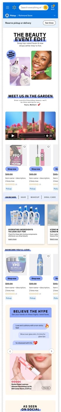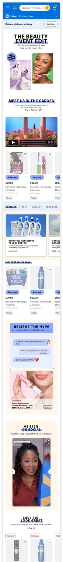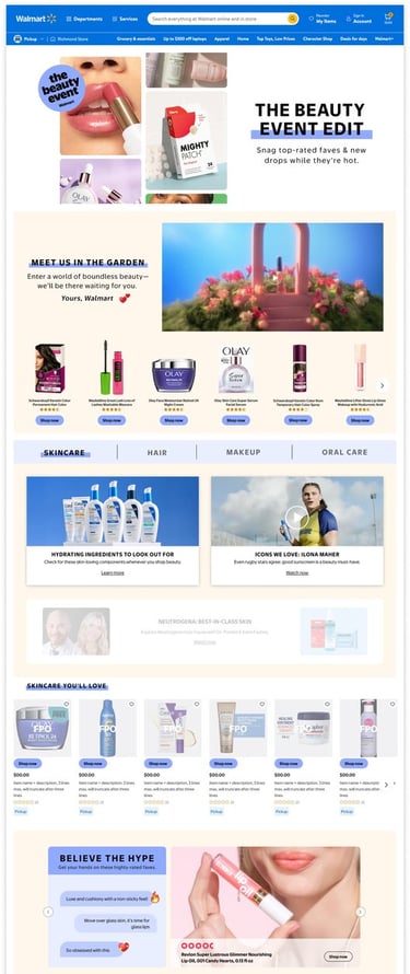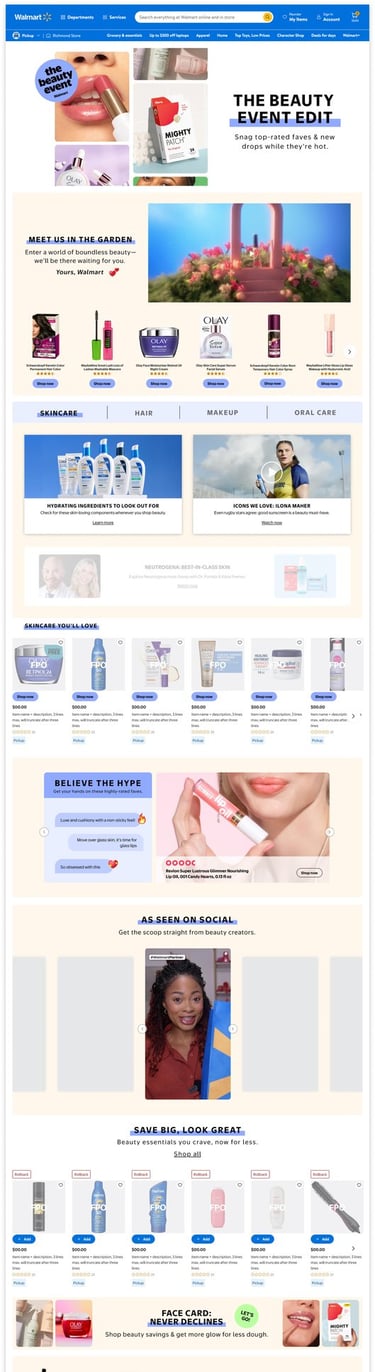 Led social-first storytelling for Walmart’s FY26 Spring Beauty Event themed around transformation and real-life beauty. Activated 1,800+ rollbacks across trending brands in skin, hair, and cosmetics.