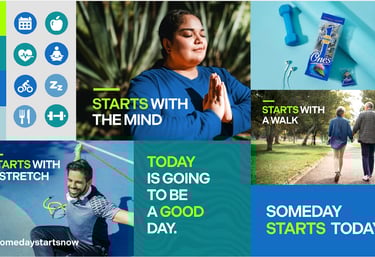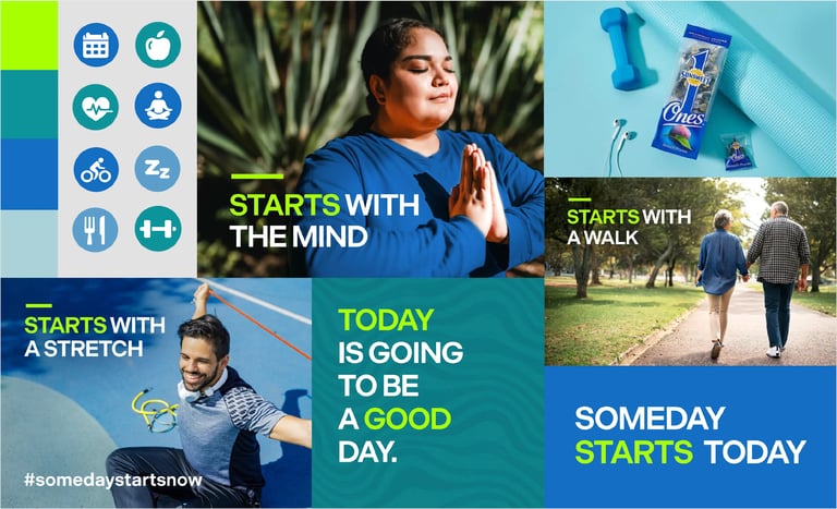 A bold, motivational campaign designed to inspire customers to take small, budget-friendly steps toward healthier habits and self-care, reinforcing Walmart’s “Welcome to your Walmart” message. It uses an omni-channel approach—from digital advertising to in-store activation—to empower individuals and groups to begin their wellness journeys today, turning “I’ll do it someday” into "Someday starts today".