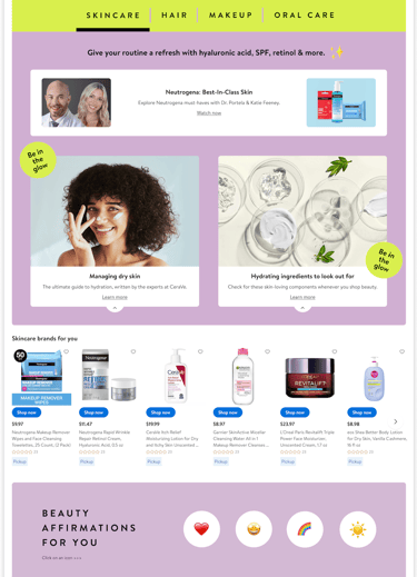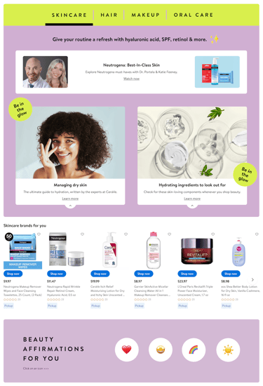 Led content and creative for Walmart’s Refine & Shine campaign—an omnichannel Signature Connect program aimed at boosting Health & Wellness sales during the slow summer OTC season. Designed to inspire customers with wellness tips, seasonal routines, and curated product recommendations.